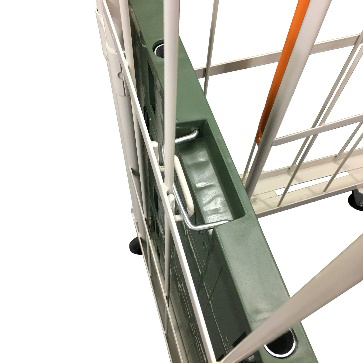 - サイドフレーム中間に補強丸棒を配置し細かい商品の落下を防げる